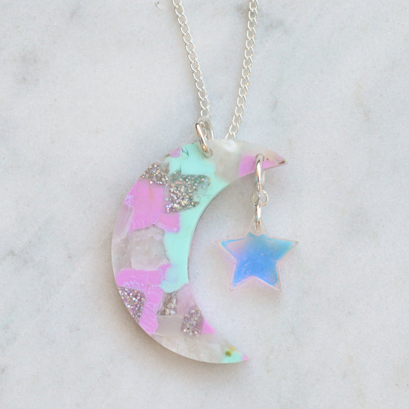 Recycled Acrylic Moon Necklace - Unicorn Mix (Lilac & Turquoise)