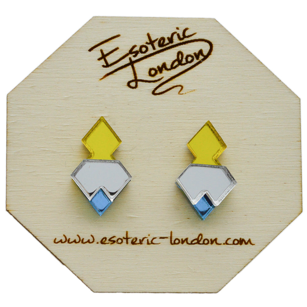 Classic Geometric Stud Earrings - Yellow/ Silver/ Blue