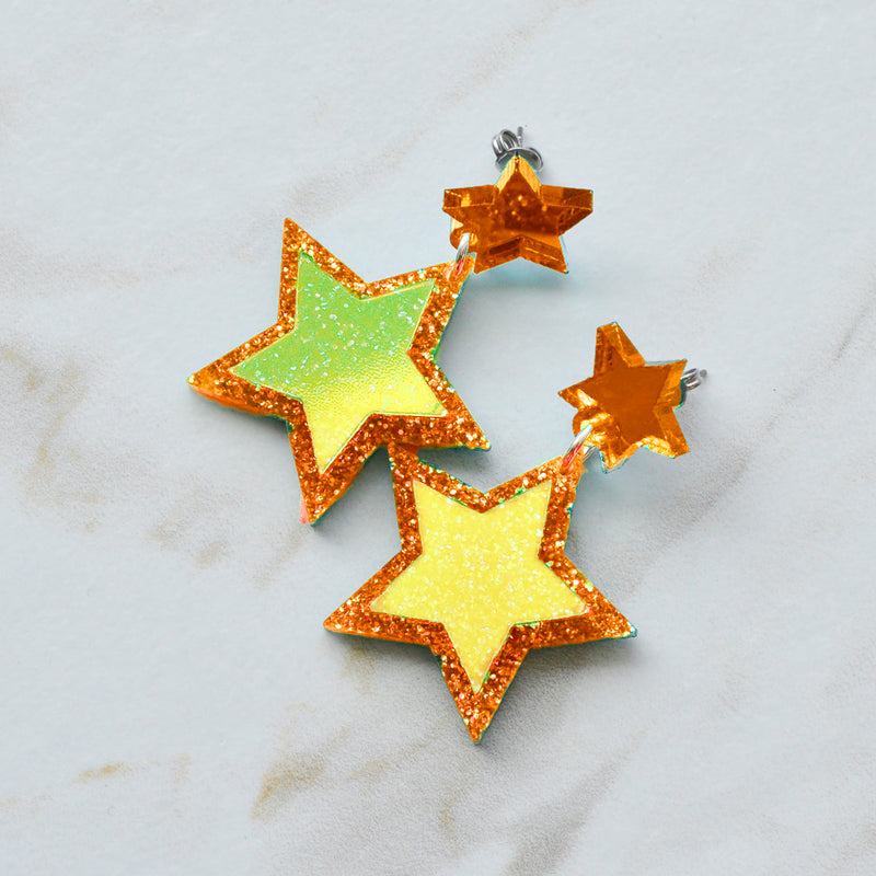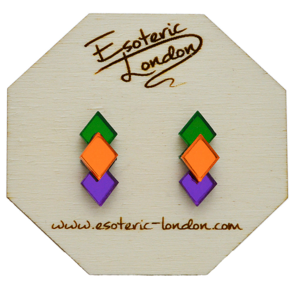 Classic Geometric Stud Earrings - Orange/ Green/ Purple