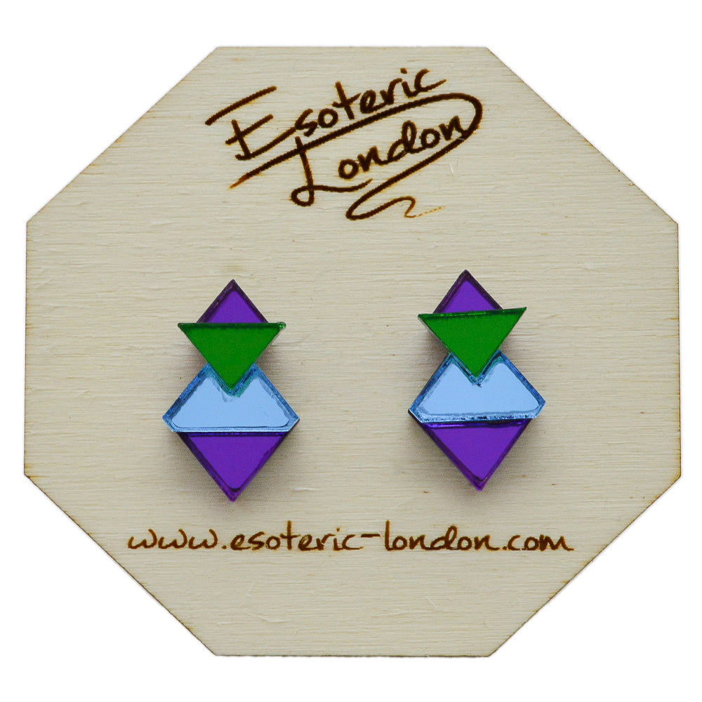 Classic Geometric Stud Earrings - Purple/ Green/ Blue