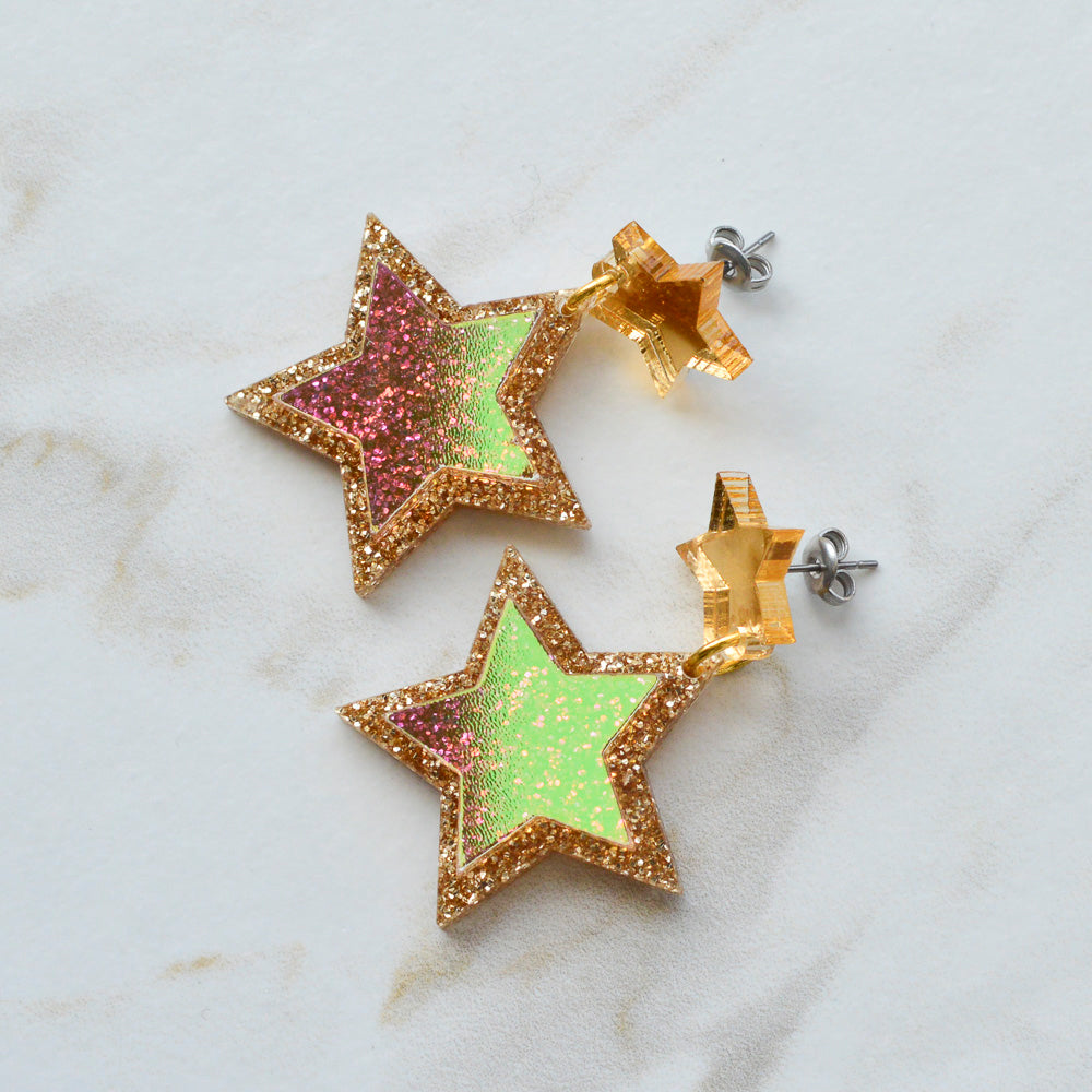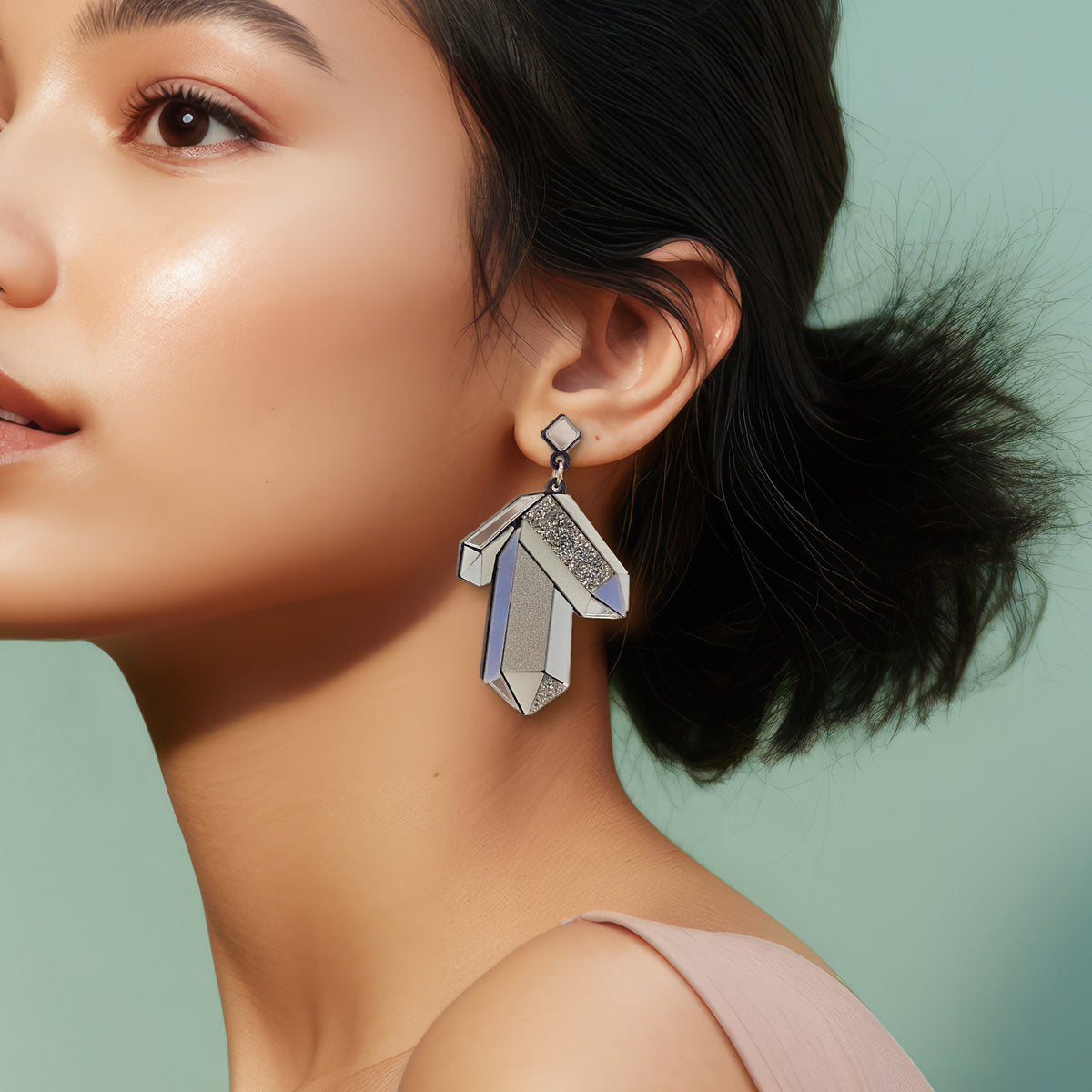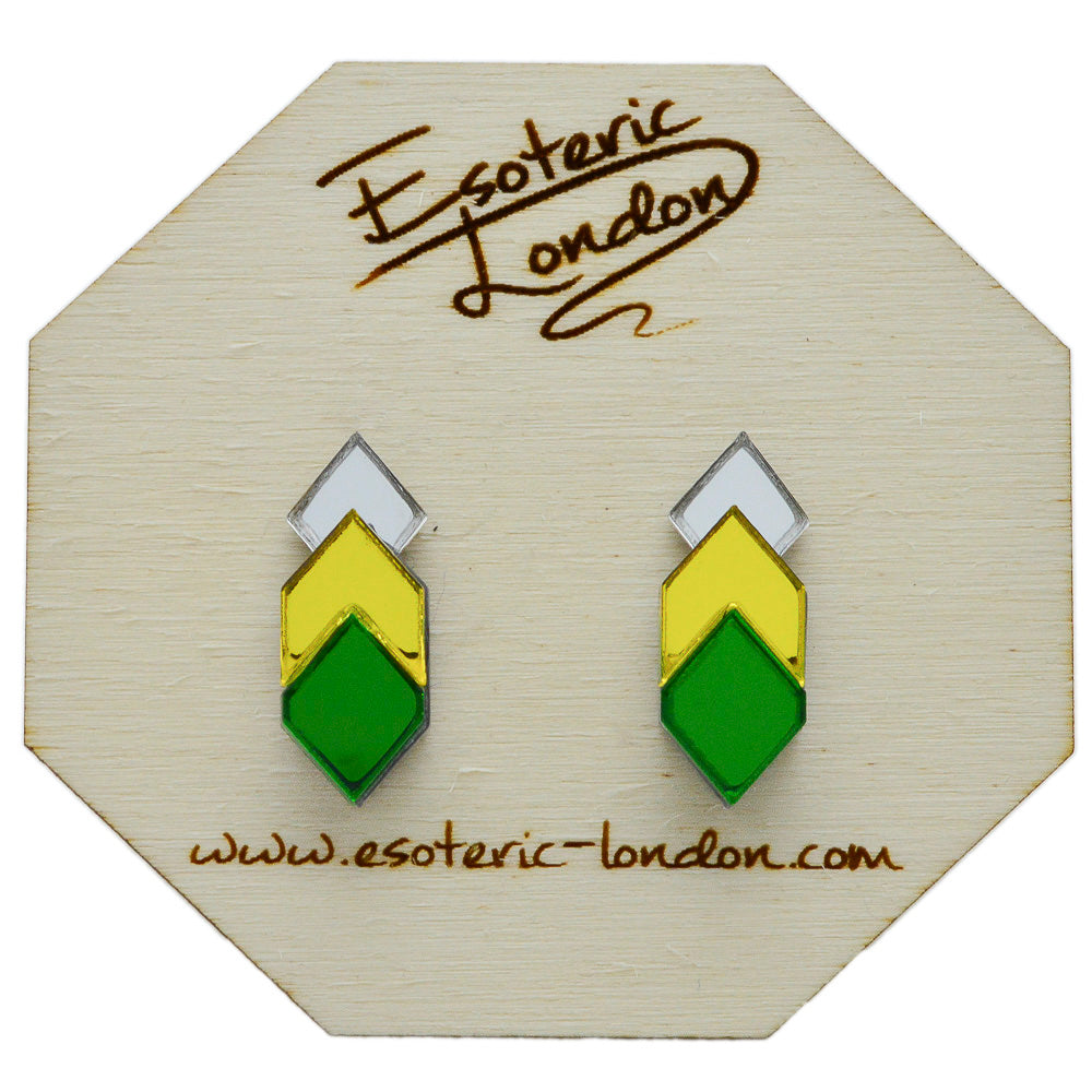 Classic Geometric Stud Earrings - Silver/ Yellow/ Green