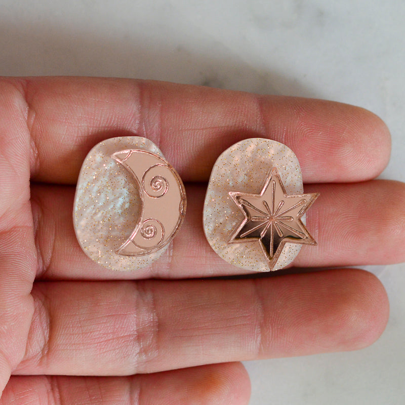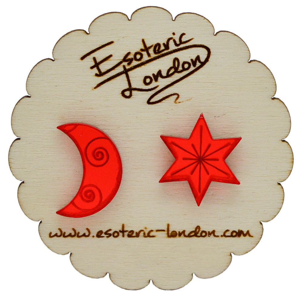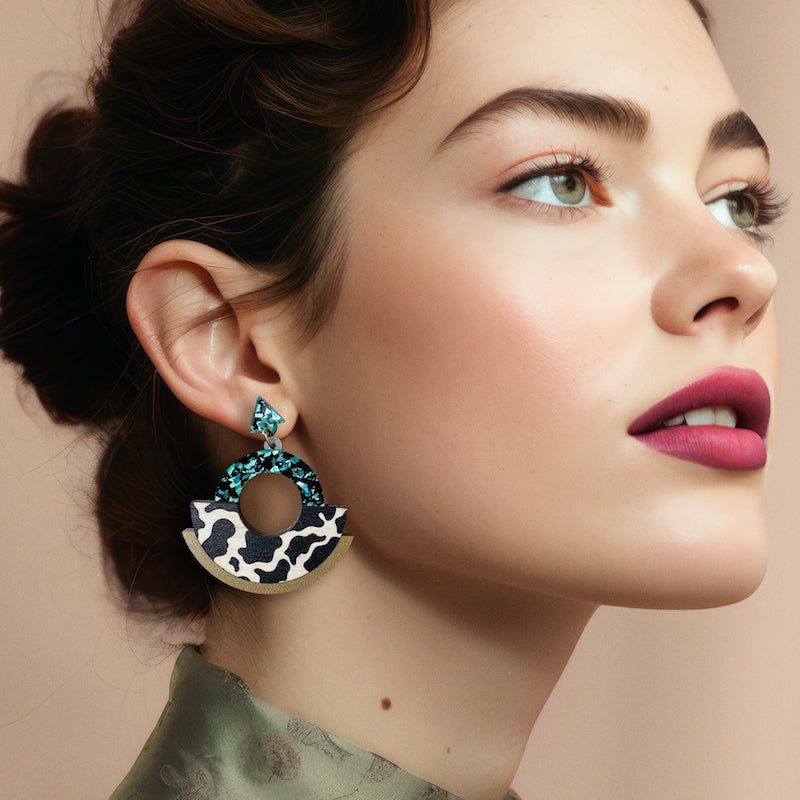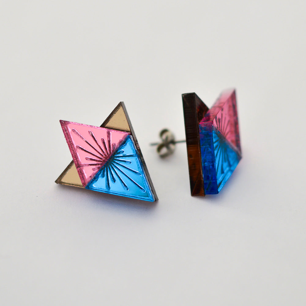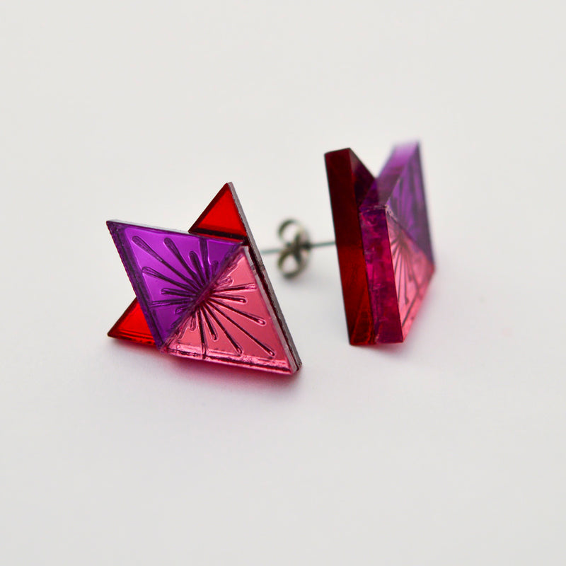 Classic Geometric Stud Earrings - Red/ Blue/ Bronze