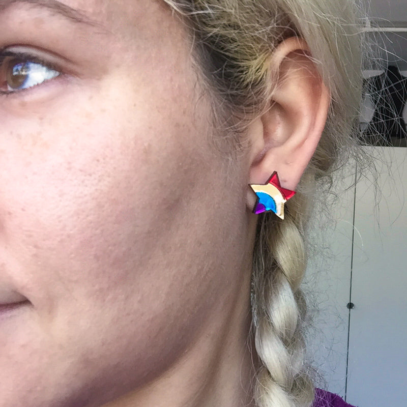 Studs are approximately 1.8x1.5cm with hypoallergenic surgical steel backs, ideal for sensitive ears.