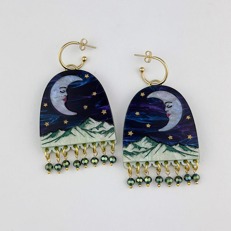 Moon Mountain Beaded Arch Hoop Statement Earrings