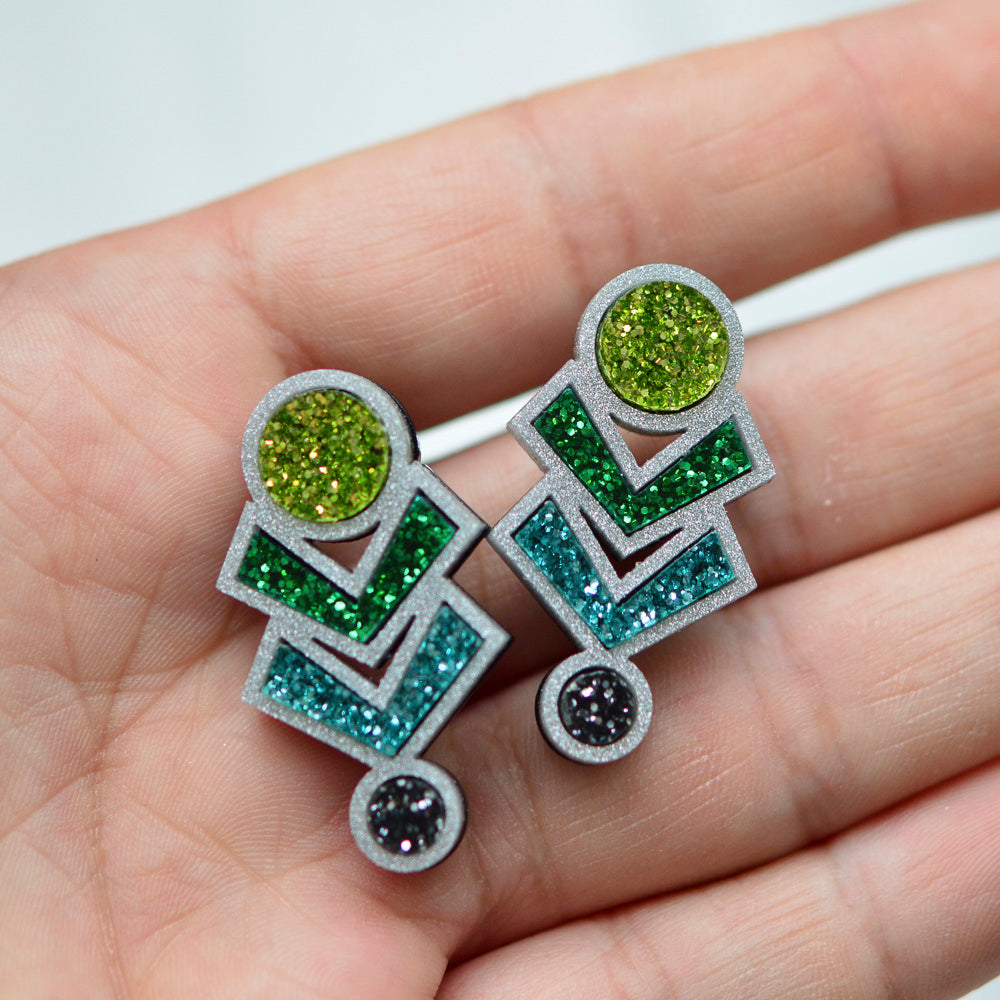 These earrings are made of beautiful laser cut glitter and shimmer perspex.