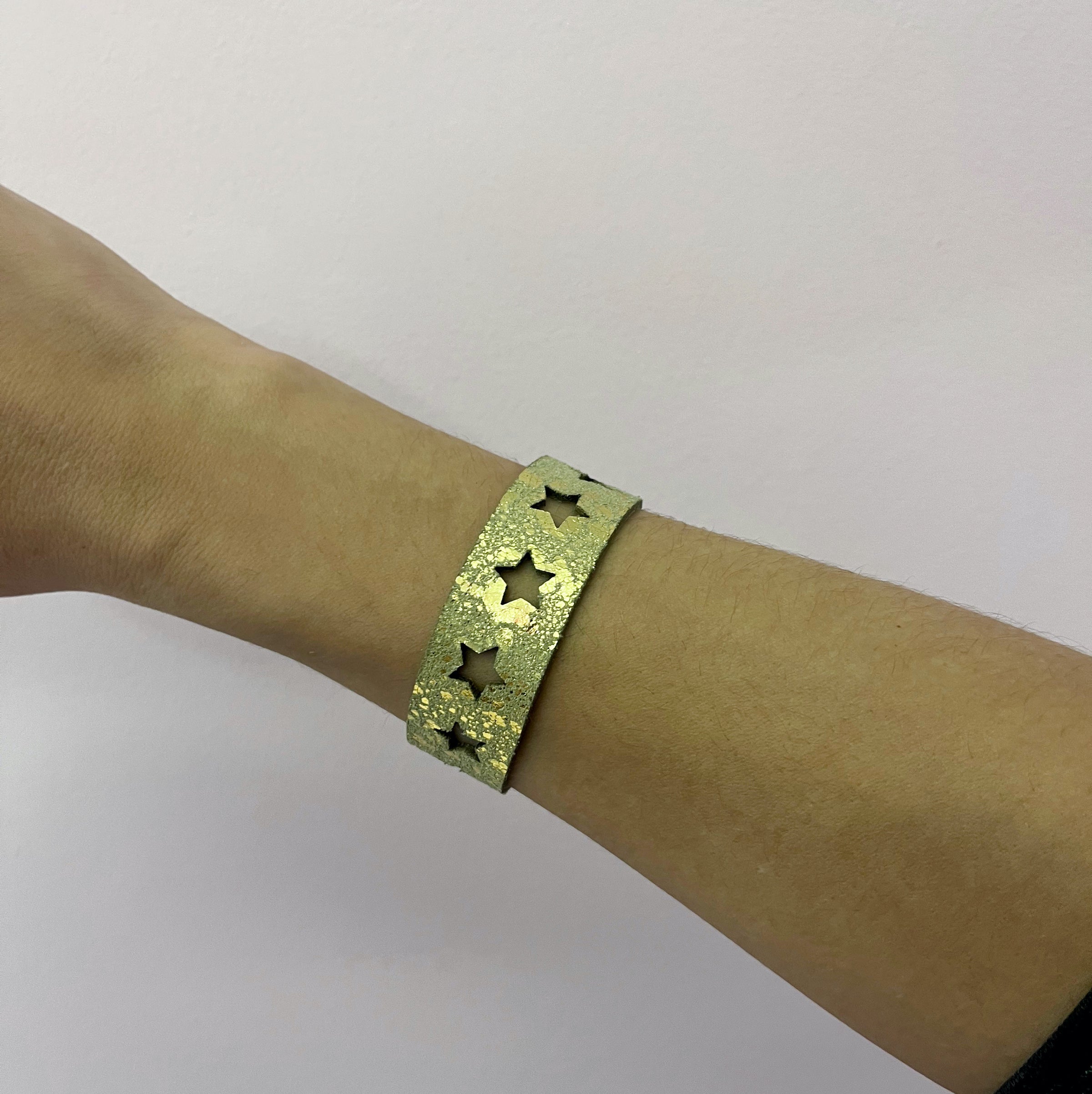 The butter soft real leather chokers and cuffs will beautifully mould to fit the body with wear. The stunning dappled foiled finish will not crack, peel or fade and with care can be worn proudly for years to come!